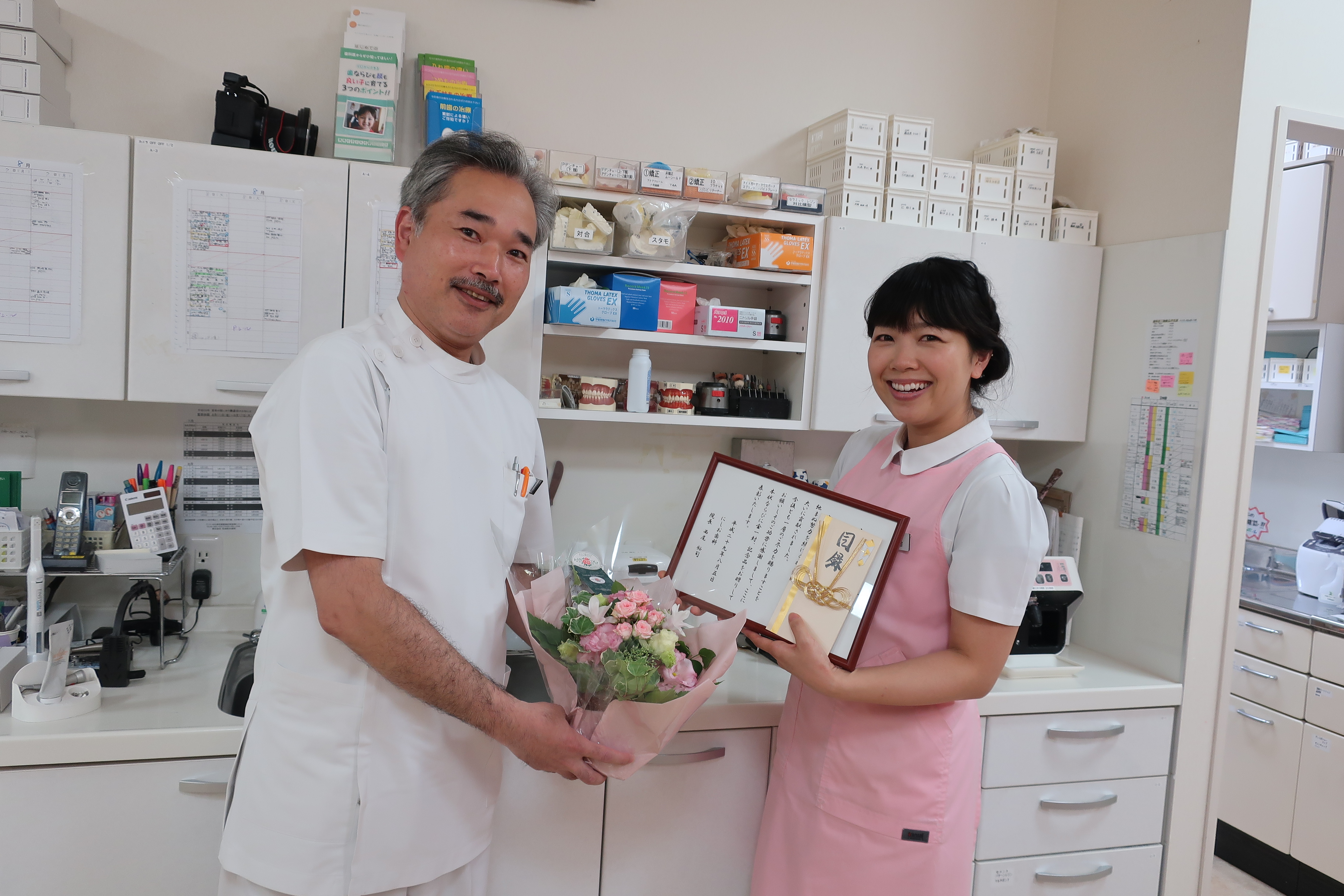 勤続10年表彰 2017年8月21日 スタッフブログ スタッフの米澤です。 先日院長はじめスタッフの皆さんに金属10年のお祝いをして頂きました。長い様であっと言う間の10年だったと思います。 にしお歯科を通じて沢山の患者様と出会うことができ改めて健康で元気に働き、様々な経験をさせて頂けている事に感謝の思いでいっぱいです。どうもありがとうございました。