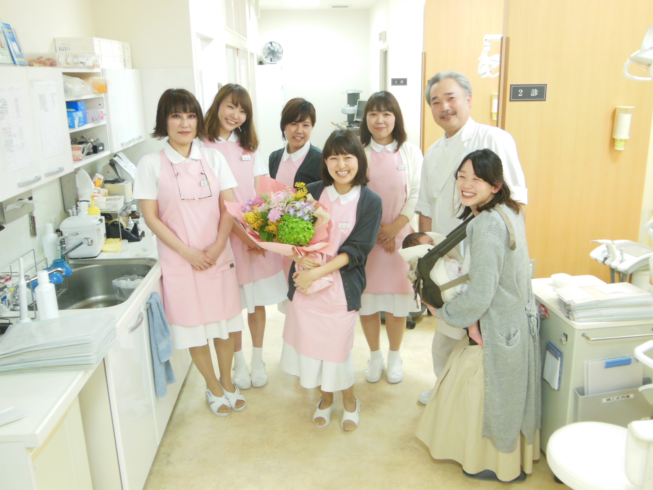 元スタッフと赤ちゃん来院 2018年3月20日 スタッフブログ 昨年まで勤務していた熊倉さんが赤ちゃんを連れて遊びに来てくれました。美味しいバームクーヘンのお土産ももってきてくれました。可愛い女の子の赤ちゃんです。まだ生後100日と経っていませんが、暖かくなってきたのと石田さんが退職するということもありきてくれました。お昼休みにバームクーヘンを食べながら色々な話に花が咲きました。