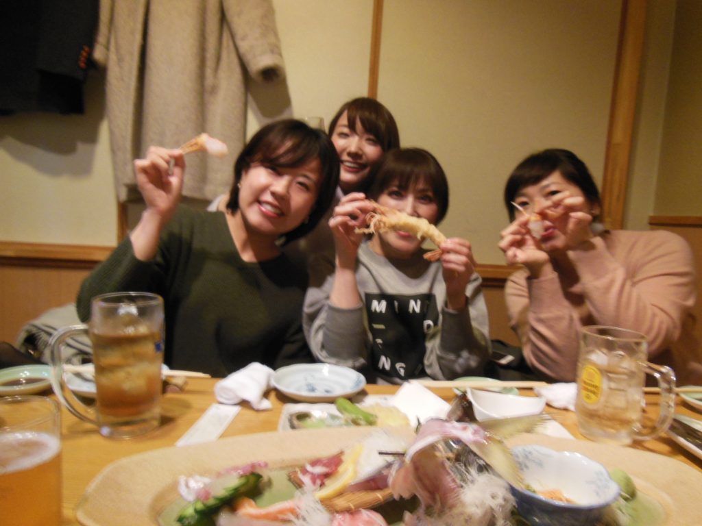 忘年会 2018年12月25日 スタッフブログ 先日、にしお歯科の忘年会を行いました。今回は、サプリメント関係の会社の紅林さんと寺元さん、医療系コンサルタントの山本さんも参加されて総勢10名での忘年会となりました。 カニづくしや黒毛和牛ステーキ、とっても大きなエビの天ぷらなどたくさんの美味しいものを食べることができて幸せでしたヽ(^o^)丿 普段皆で食事をする機会も少ないので楽しくお話もでき、貴重な時間を過ごすことができました♥♥♥