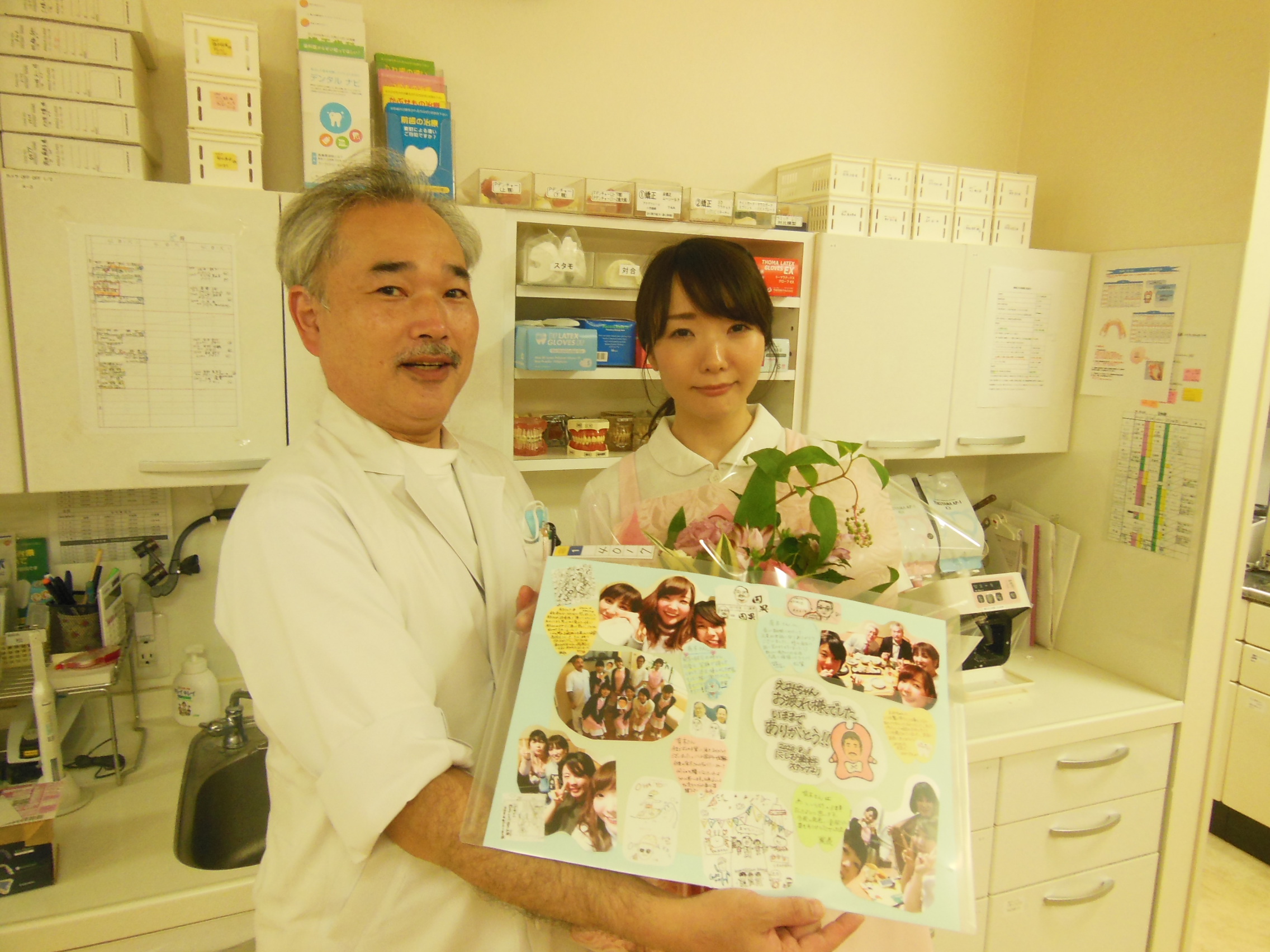 こんにちは! 歯科アシスタントの有木です。 私事ではございますが、この度遠方への引越しが決まりにしお歯科を退職することとなりました。5年半という長いようで短い月日でしたが、優しいスタッフと患者様に囲まれ毎日が本当に楽しく幸せな日々を過ごさせていただきました。歯科のことについて知識がほとんど無い中、入職してから毎日が勉強の日々で、改めて歯の重要さと日々のケアの大切さを学ぶことができました。ここで培った知識と経験そして忙しくも楽しかった日々の思い出は私にとって宝物です。これからもにしお歯科の益々の発展、そして患者様のご健康を心よりお祈り申し上げます。 本当にありがとうございました。