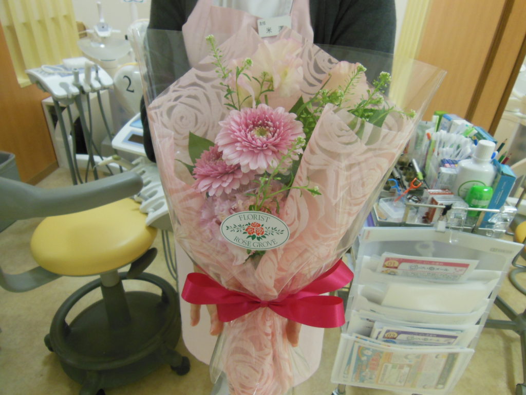 スタッフ誕生日のお祝い 2021年3月8日 スタッフブログ こんにちは。 米澤です。 先日、スタッフの皆様に誕生日を祝っていただきました。 優しい色合いの花束を頂き、もう春はすぐ近くなんだなと感じました。 ありがとうございました。