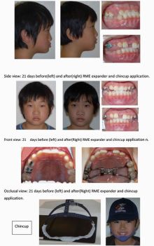 21日間チンキャップを装着(学校でも)しながら上顎を急速拡大して反対咬合